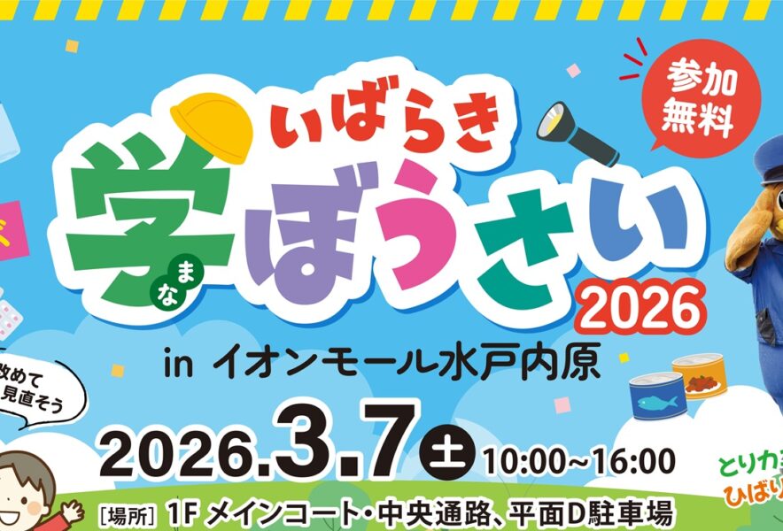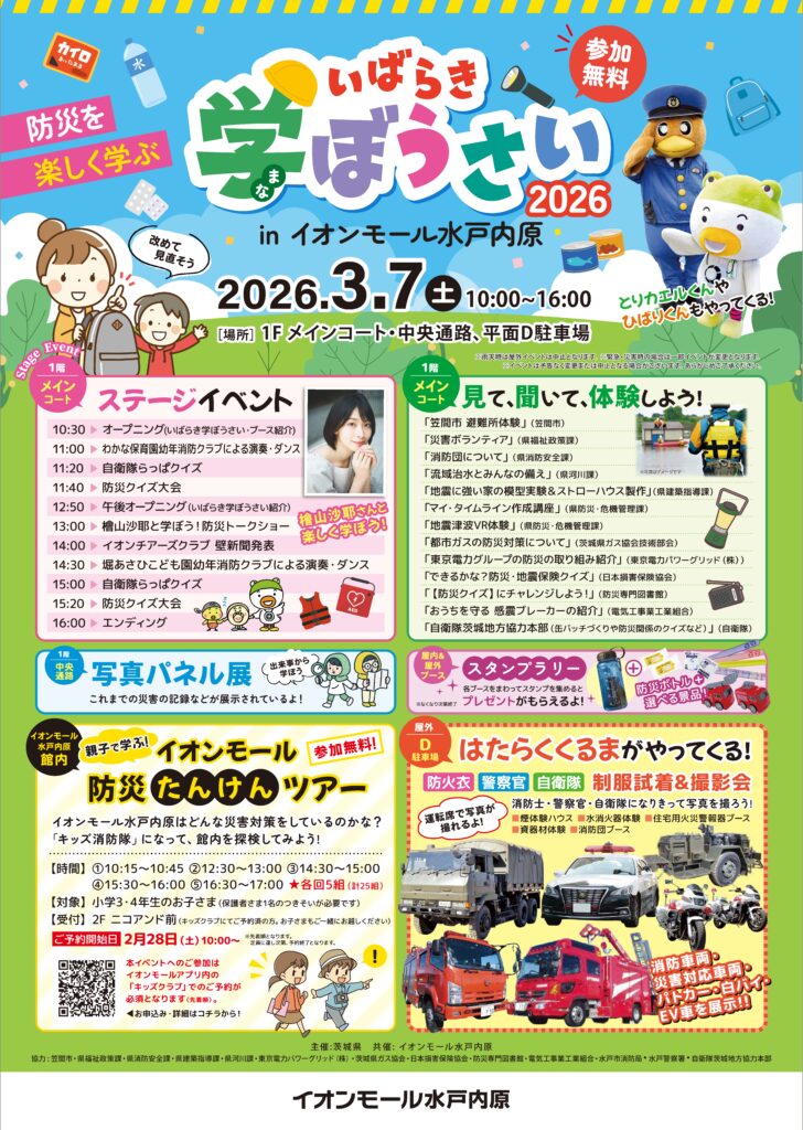 ★いばらき学ぼうさい with 防災フェス★令和8年3月7日(土) 10時から16時 イオンモール水戸内原(1Fメインコート・中央通路、平面D駐車場)において開催